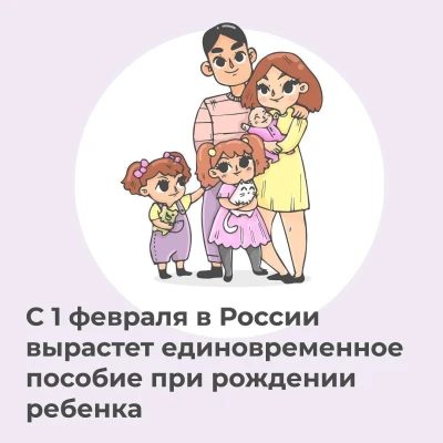 Они будут автоматически повышены на 5,6%. В результате единовременное пособие при рождении ребенка с 1 февраля составит 28450,45 рубля.