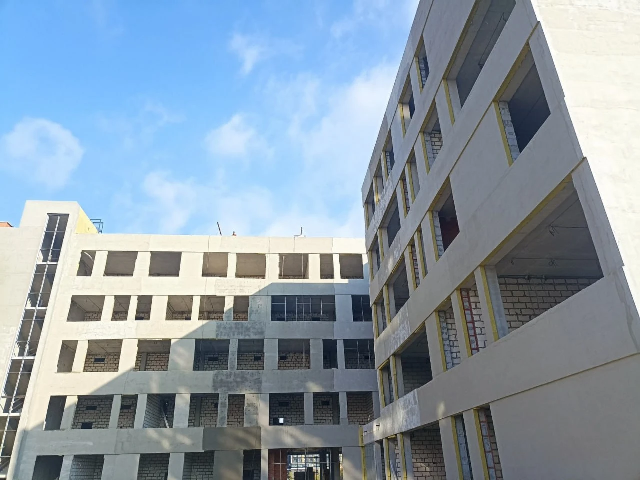 Сегодня строительная готовность превышает 45%. Выполнены монтаж каркаса здания, наружная кладка, кровельные работы. Монтаж окон и витражей находится на завершающем этапе. Продолжаются работы по устройству фасада и инженерных сетей. Строительство объекта соответствует партийному проекту «Новая школа».