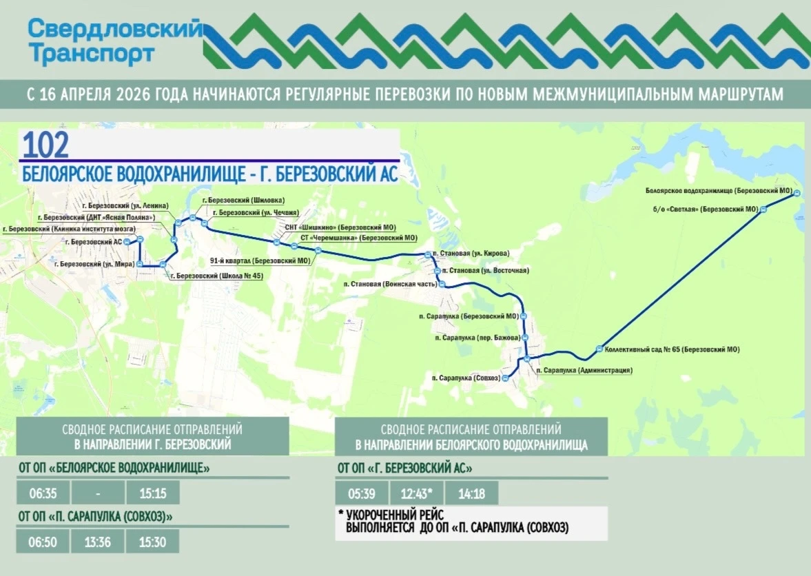 Уважаемые жители Берёзовского муниципального округа! С 16 апреля 2026 года в работу общественного транспорта Свердловской области вносятся важные изменения. Они касаются сразу нескольких межмуниципальных маршрутов и направлены на повышение транспортной доступности населённых пунктов.
