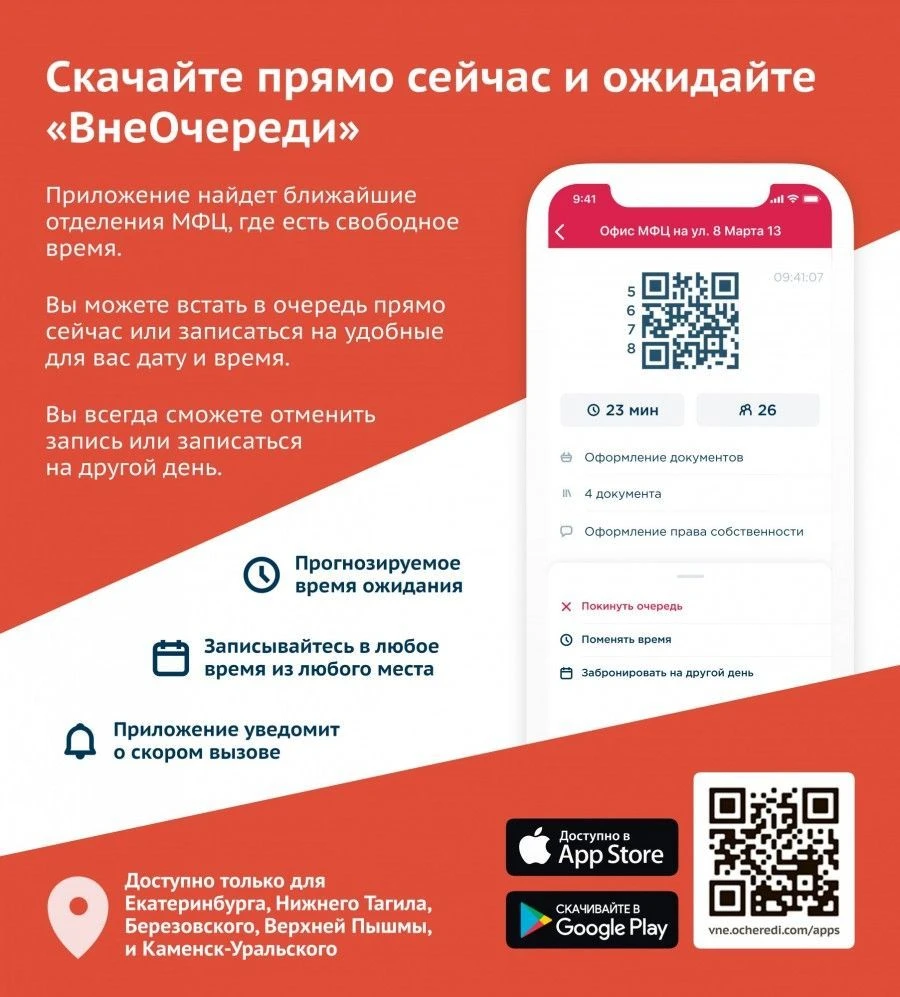 - через мобильное приложение «ВнеОчереди»