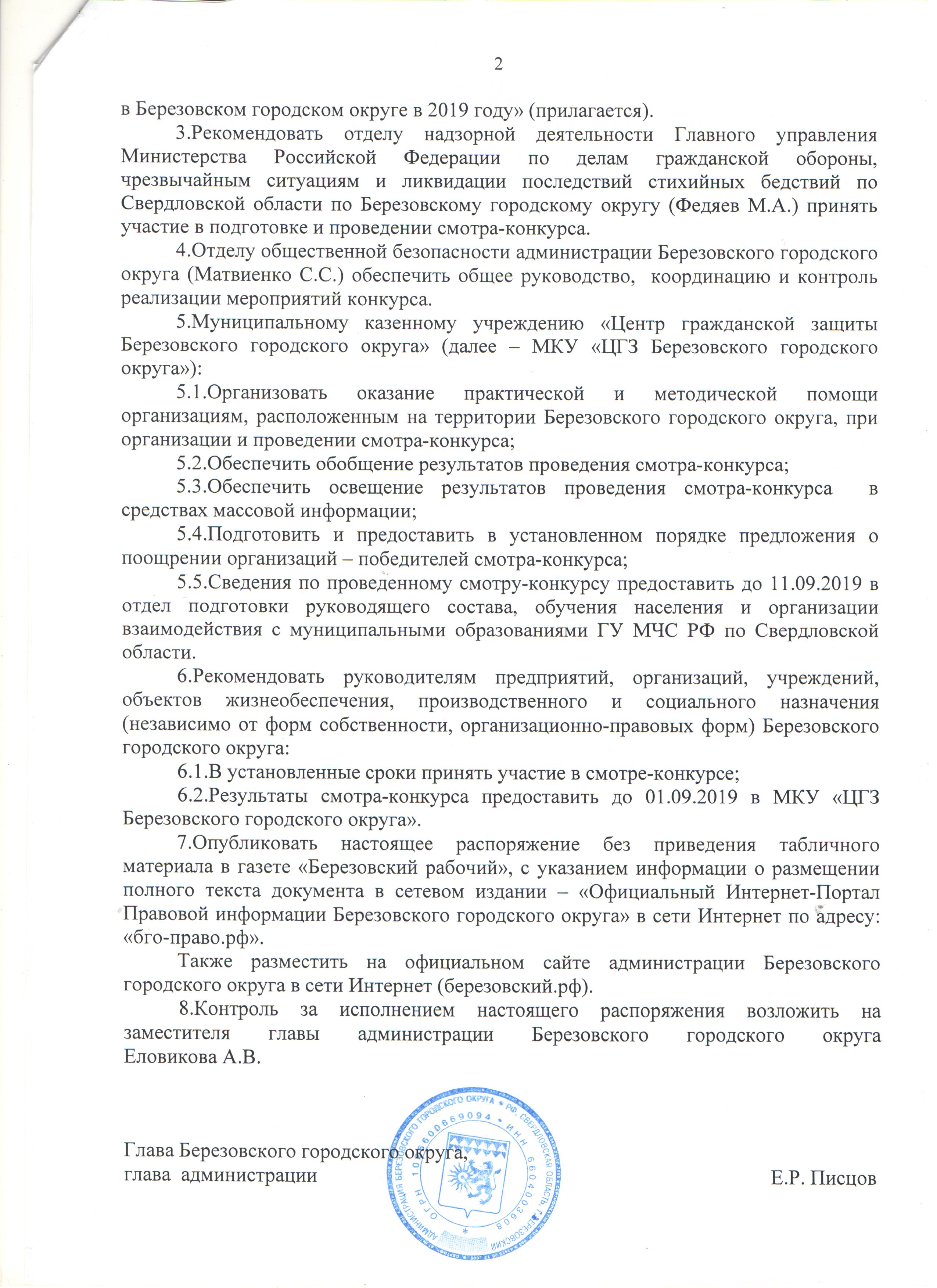 Федеральный закон Российской Федерации от 12.02.1998 № 28 О гражданской обороне ( в редакции от 30.12.2015 № 448-ФЗ) (docx, 27.97 KB) Федеральный закон Российской Федерации от 21.12.1994 № 68 (в редакции от 15.02.2016 № 31-ФЗ) (docx, 48.19 KB) Постановление Правительства РФ№ 794 от 30.12.2003(в редакции от 14.04.2015) О единой государственной системе предупреждения и ликвидации чрезвычайных ситуаций (doc, 304 KB) Постановление правительства РФ от 29.11.1999 г.№ 1309 О порядке создания убежищ и иных объектов гражданской обороны (docx, 17.4 KB) Приказ МЧС РФ № 331 от 30.06.2014г. О внесении изменений в Порядок создания нештатных аварийно-спасательных формирований,утвержденный приказом МЧС России от 23.12.2005 № 999 (doc, 265.5 KB) Приказ МЧС РФ от 18.12.2014 № 701 Об утверждении типового порядка создания нештатных формирований по обеспечению выполнения мероприятий по ГО (doc, 172 KB) Постановление администрации Березовского городского округа от 11.03.2016 № 166 Об утверждении Положения об организации и ведении гражданской обороны в Березовском городском округе и организациях (doc, 199.5 KB) Приказ МЧС России от 15.12.2002 № 583(ред.от 22.12.2015) Об утверждении и введении в действие Правил эксплуатации защитных сооружений гражданской обороны(зарегистрировано в Минюсте России 25.03.2003 № 4317) (rtf, 2.02 MB) Приказ МЧС России от 01.10.2014 № 543 Об утверждении Положения об организации обспечения населения средствами индивидульной защиты(Зарегистрировано в Минюсте России 02.03.2015 №36320) (rtf, 432.49 KB) Приказ ГУ МЧС России от 30.11.2015 № 618 О внесении изменений в Правила пользования и содержания средств индивидуальной защиты ,приборов радиационной,химической разведки и контроля,утвержденные приказом МЧС России от 27.05 (pdf, 311.71 KB) Постановление администрации Березовского городского округа от 14.07.2015 № 382 О Березовском городском звене Свердловской областной подсистемы единой государственной системы предупреждения и ликвидации чрезвычайных ситуаци (doc, 170.5 KB) Постановление администрации Березовского городского округа от 20.07.2015 № 398 О комиссии Березовского городского округа по предупреждению и ликвидации чрезвычайных ситуаций и обеспечению пожарной безопасности (docx, 71.22 KB) Приказ МЧС РФ от 21.07.2005 № 575 Об утверждении Порядка содержания и использования защитных сооружений гражданской обороны в мирное время(с изменениями и дополнениями) (docx, 24.75 KB) Постановление РФ от 19.04.2017 № 470 О внесении изменений в постановление правительства РФ от 02 ноября 2000 г.№ 841 (doc, 68 KB) Распоряжение администрации Березовского городского округа от 23.08.2018 № 296 О проведении инвентаризации защитных сооружений гражданской обороны в Березовском городском округе (pdf, 2.7 MB) Постановление Администрации БГО Об утверждении положение о единой дежурно-диспетчерской службе БГО (pdf, 8.26 MB) 1620195191535 (jpg, 839.75 KB) 19928.05.2019706989_v1_20195191536 (doc, 334.5 KB) 4703974v120195191650 (xlsx, 19.24 KB) Постановление администрации Березовского городского округа от 01.10.2019 № 910 О порядке оповещения и информирования населения об опасностях, возникающих при военных конфликтах или вследствие этих конфликтов, а также при ч (docx, 27.5 KB) Постановление администрации Березовского городского округа от 14.08.2019 № 721 Об организации подготовки населения Березовского городского округа в области гражданской обороны и в области защиты от чрезвычайных ситуаций пр (doc, 97.5 KB) приложение № 2 к постановлению (docx, 31.25 KB) Порядок оповещения и информирования населения (docx, 24.59 KB) Схема оповещения 