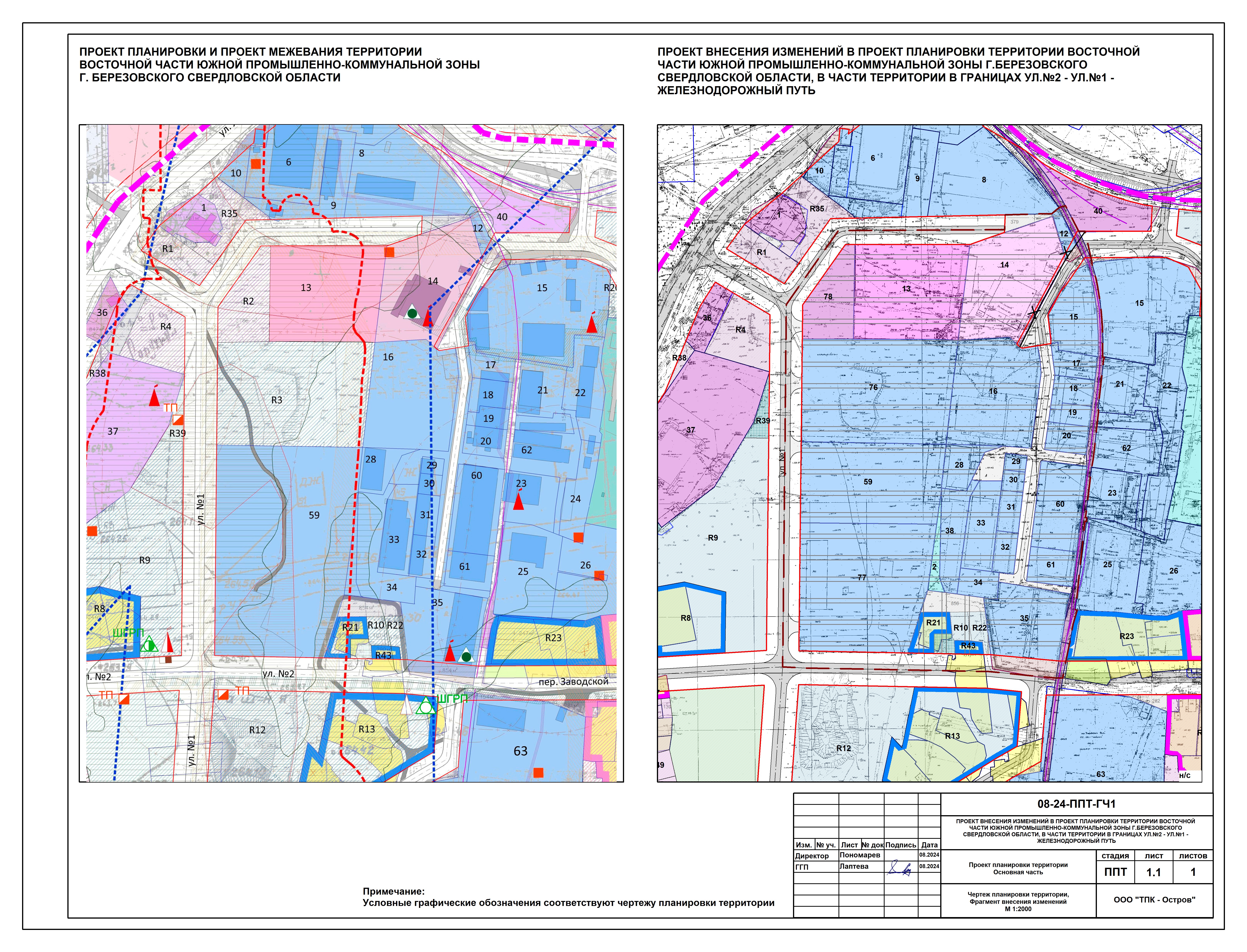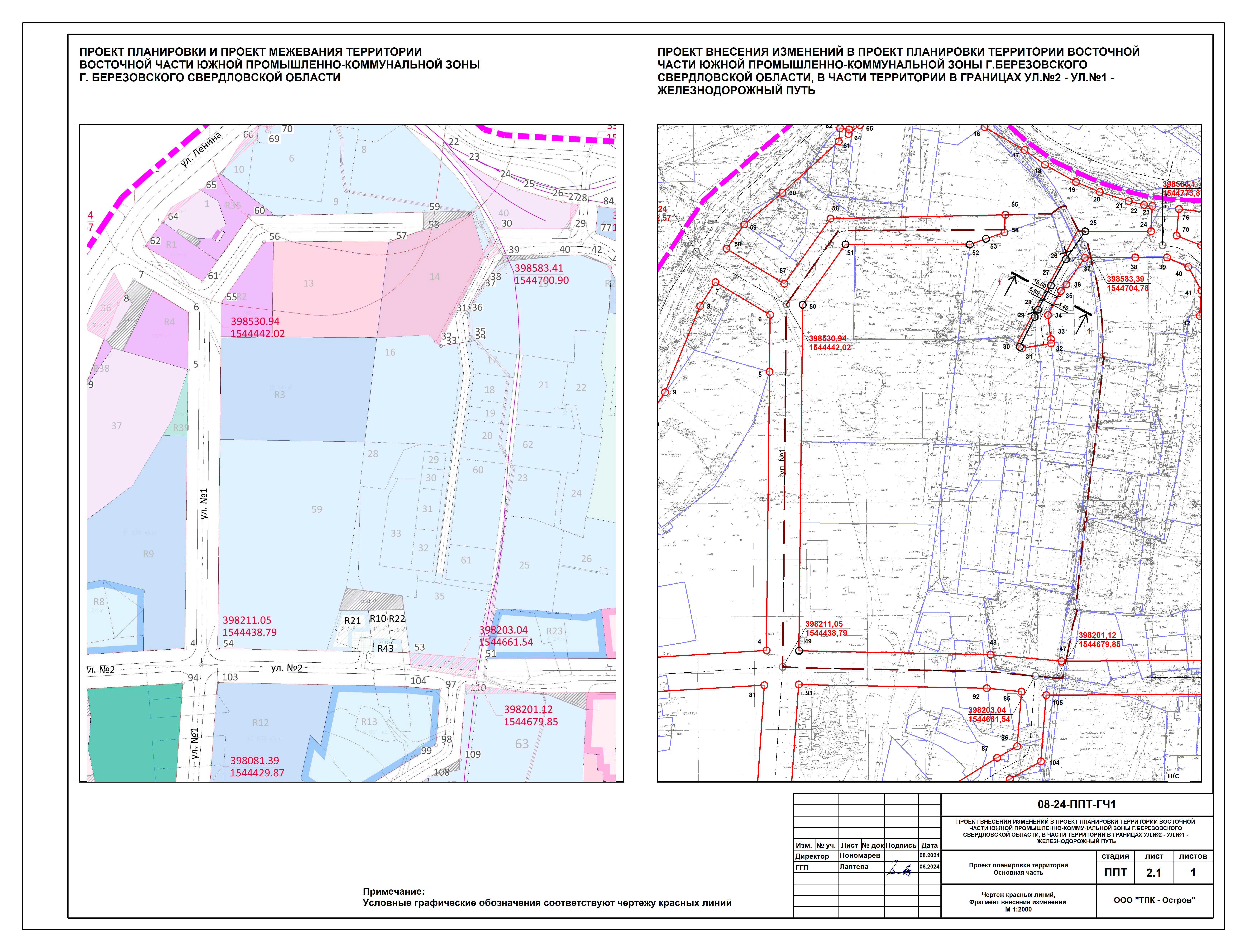 Проект внесения изменений в проект планировки территории восточной части Южной промышленно-коммунальной зоны г.Березовского Свердловской области, в части территории в границах ул. №2 – ул.№1 – железнодорожный путь