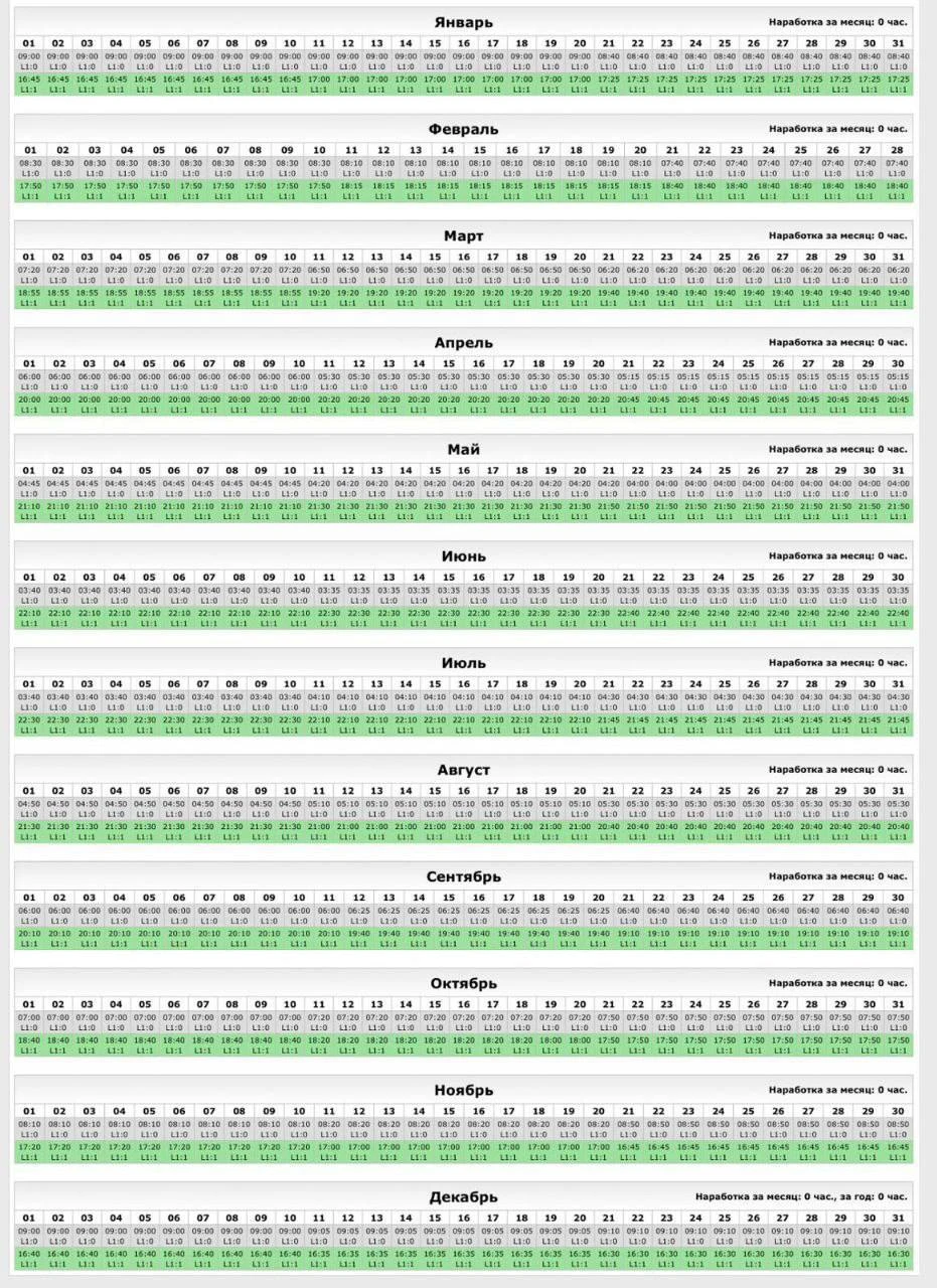 На картинке – актуальный график включения/отключения по месяцам. Например, 31 октября, вечернее освещение включилось в 17.50, а с 1 ноября уже на пол часа раньше, с 17.20.