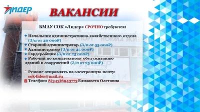 Присылать резюме можно сюда - sok-lider@mail.ru