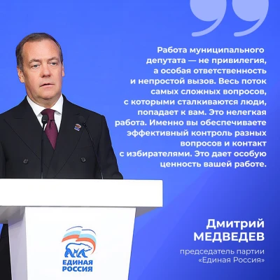 Там же председатель партии «Единая Россия» Дмитрий Медведев обозначил депутатскому корпусу задачи на 2026 год. Главные из них — продолжение укрепления взаимодействия с первичными отделениями, поддержка участников СВО и их семей, а также коллег, которые трудятся на исторических территориях.