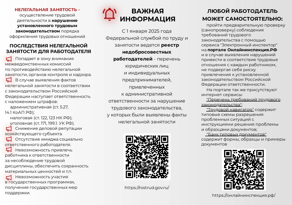 С 1 января 2025 года Федеральной службой по труду и занятости ведется реестр недобросовестных работодателей — перечень юридических лиц и индивидуальных предпринимателей, привлеченных к административной ответственности за нарушение трудового законодательства, у которых были выявлены факты нелегальной занятости.