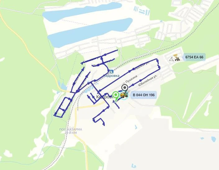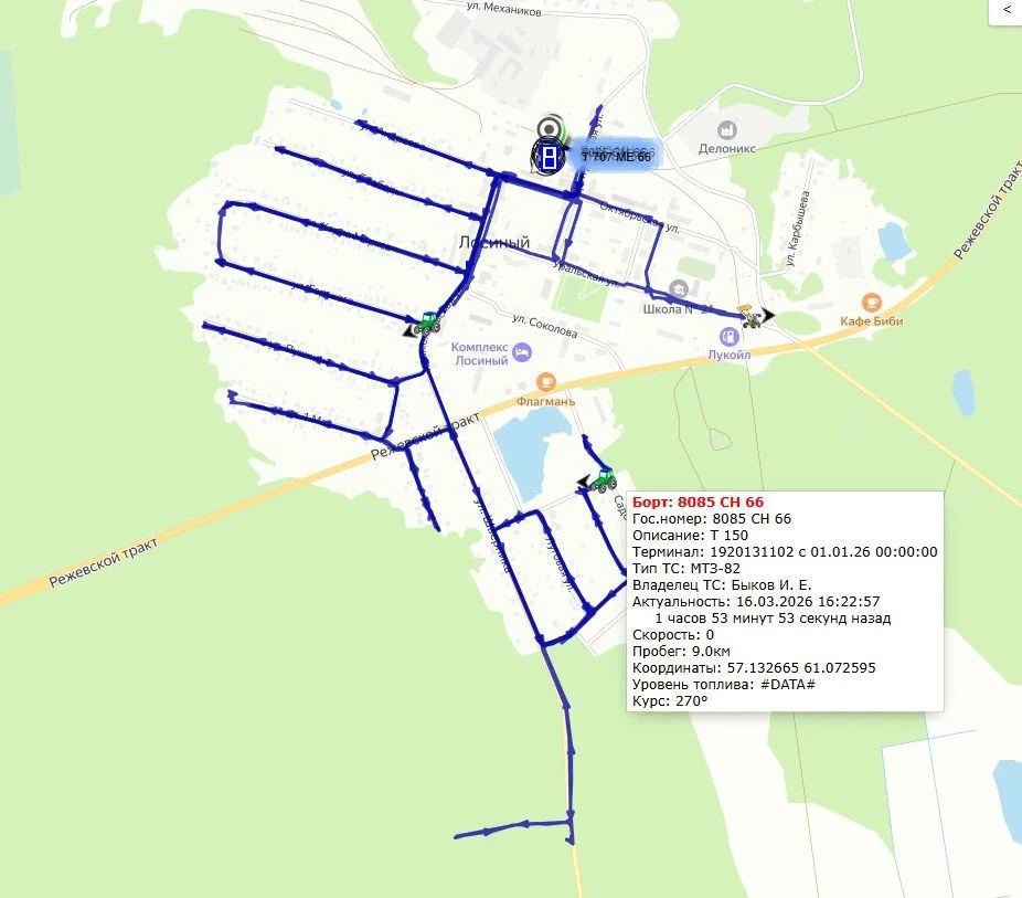 Всего 29 единиц техники. На картах - навигации улицы, где прошла чистка. В том числе трактор работал на улицах Лесозаводского.