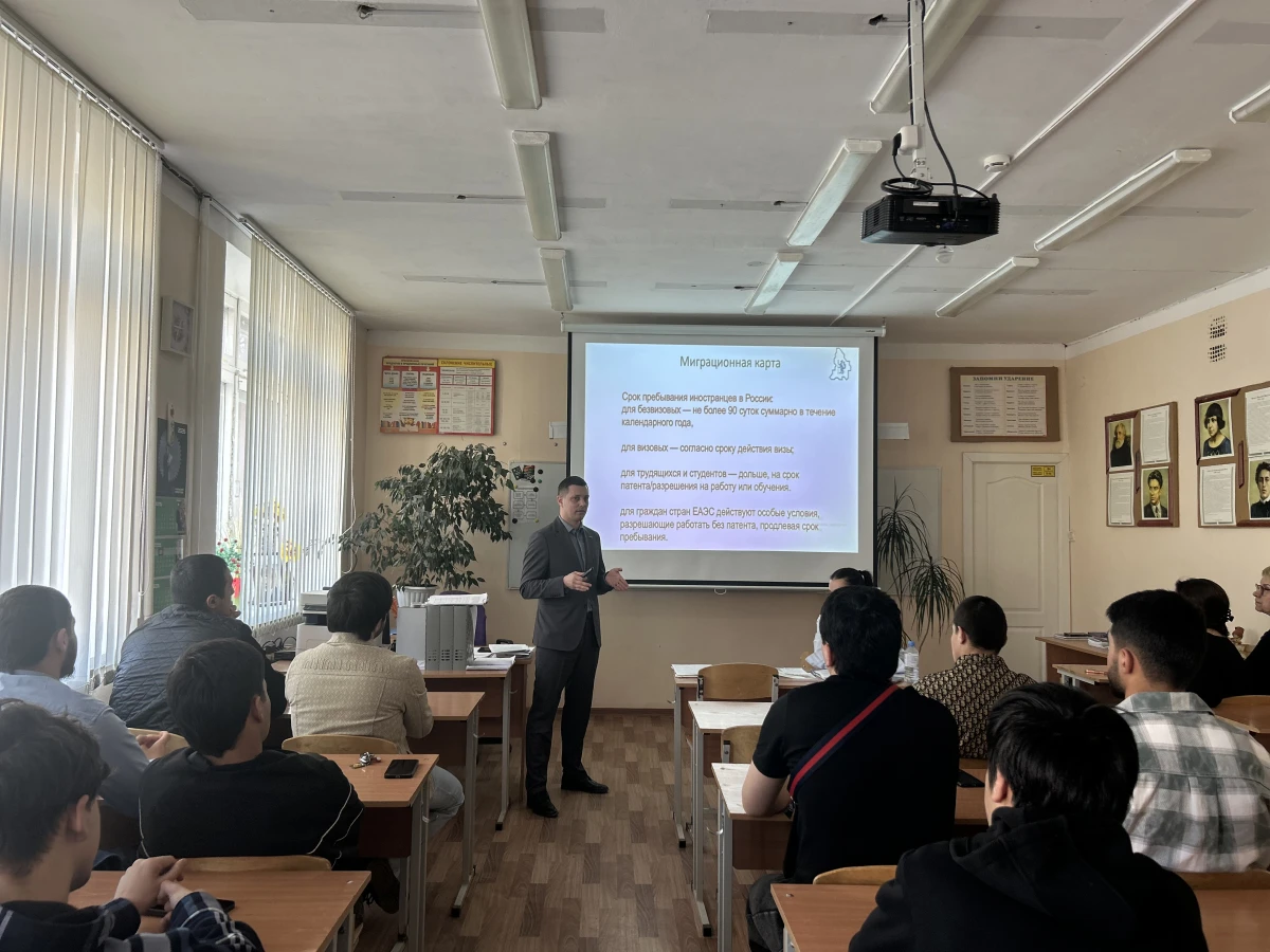 Участники узнали об основах российского законодательства, мерах ответственности за его нарушение, а также познакомились с культурными и историческими особенностями региона. После лекции участники смогли получить разъяснения по вопросам применения миграционного законодательства и прав.