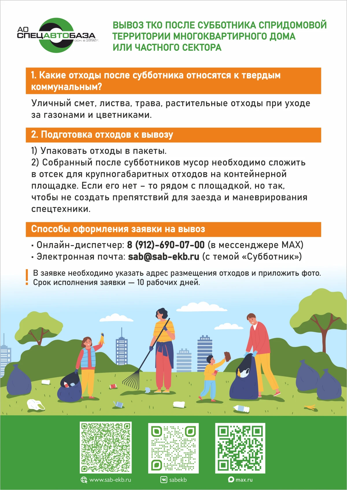 «Спецавтобаза» принимает заявки на вывоз твердых коммунальных отходов после весенних субботников