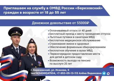 Кандидатам обращаться по адресу: г. Березовский, ул. Исакова, 5, отделение по работе с личным составом.
