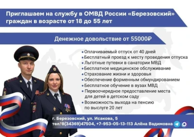 Кандидатам обращаться по адресу: г. Березовский, ул. Исакова, 5, отделение по работе с личным составом,