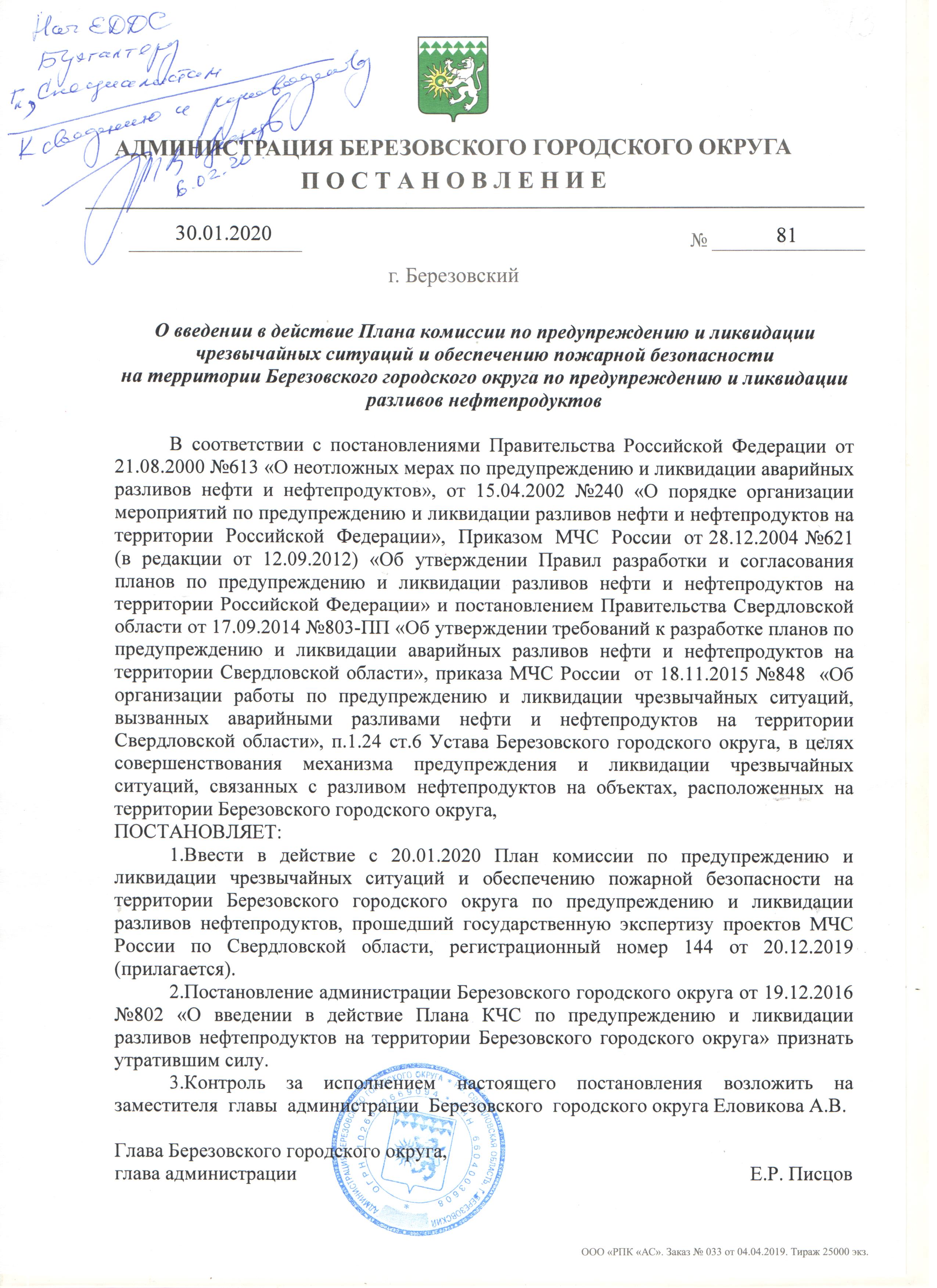 Федеральный закон Российской Федерации от 12.02.1998 № 28 О гражданской обороне ( в редакции от 30.12.2015 № 448-ФЗ) (docx, 27.97 KB) Федеральный закон Российской Федерации от 21.12.1994 № 68 (в редакции от 15.02.2016 № 31-ФЗ) (docx, 48.19 KB) Постановление Правительства РФ№ 794 от 30.12.2003(в редакции от 14.04.2015) О единой государственной системе предупреждения и ликвидации чрезвычайных ситуаций (doc, 304 KB) Постановление правительства РФ от 29.11.1999 г.№ 1309 О порядке создания убежищ и иных объектов гражданской обороны (docx, 17.4 KB) Приказ МЧС РФ № 331 от 30.06.2014г. О внесении изменений в Порядок создания нештатных аварийно-спасательных формирований,утвержденный приказом МЧС России от 23.12.2005 № 999 (doc, 265.5 KB) Приказ МЧС РФ от 18.12.2014 № 701 Об утверждении типового порядка создания нештатных формирований по обеспечению выполнения мероприятий по ГО (doc, 172 KB) Постановление администрации Березовского городского округа от 11.03.2016 № 166 Об утверждении Положения об организации и ведении гражданской обороны в Березовском городском округе и организациях (doc, 199.5 KB) Приказ МЧС России от 15.12.2002 № 583(ред.от 22.12.2015) Об утверждении и введении в действие Правил эксплуатации защитных сооружений гражданской обороны(зарегистрировано в Минюсте России 25.03.2003 № 4317) (rtf, 2.02 MB) Приказ МЧС России от 01.10.2014 № 543 Об утверждении Положения об организации обспечения населения средствами индивидульной защиты(Зарегистрировано в Минюсте России 02.03.2015 №36320) (rtf, 432.49 KB) Приказ ГУ МЧС России от 30.11.2015 № 618 О внесении изменений в Правила пользования и содержания средств индивидуальной защиты ,приборов радиационной,химической разведки и контроля,утвержденные приказом МЧС России от 27.05 (pdf, 311.71 KB) Постановление администрации Березовского городского округа от 14.07.2015 № 382 О Березовском городском звене Свердловской областной подсистемы единой государственной системы предупреждения и ликвидации чрезвычайных ситуаци (doc, 170.5 KB) Постановление администрации Березовского городского округа от 20.07.2015 № 398 О комиссии Березовского городского округа по предупреждению и ликвидации чрезвычайных ситуаций и обеспечению пожарной безопасности (docx, 71.22 KB) Приказ МЧС РФ от 21.07.2005 № 575 Об утверждении Порядка содержания и использования защитных сооружений гражданской обороны в мирное время(с изменениями и дополнениями) (docx, 24.75 KB) Постановление РФ от 19.04.2017 № 470 О внесении изменений в постановление правительства РФ от 02 ноября 2000 г.№ 841 (doc, 68 KB) Распоряжение администрации Березовского городского округа от 23.08.2018 № 296 О проведении инвентаризации защитных сооружений гражданской обороны в Березовском городском округе (pdf, 2.7 MB) Постановление Администрации БГО Об утверждении положение о единой дежурно-диспетчерской службе БГО (pdf, 8.26 MB) 1620195191535 (jpg, 839.75 KB) 19928.05.2019706989_v1_20195191536 (doc, 334.5 KB) 4703974v120195191650 (xlsx, 19.24 KB) Постановление администрации Березовского городского округа от 01.10.2019 № 910 О порядке оповещения и информирования населения об опасностях, возникающих при военных конфликтах или вследствие этих конфликтов, а также при ч (docx, 27.5 KB) Постановление администрации Березовского городского округа от 14.08.2019 № 721 Об организации подготовки населения Березовского городского округа в области гражданской обороны и в области защиты от чрезвычайных ситуаций пр (doc, 97.5 KB) приложение № 2 к постановлению (docx, 31.25 KB) Порядок оповещения и информирования населения (docx, 24.59 KB) Схема оповещения 